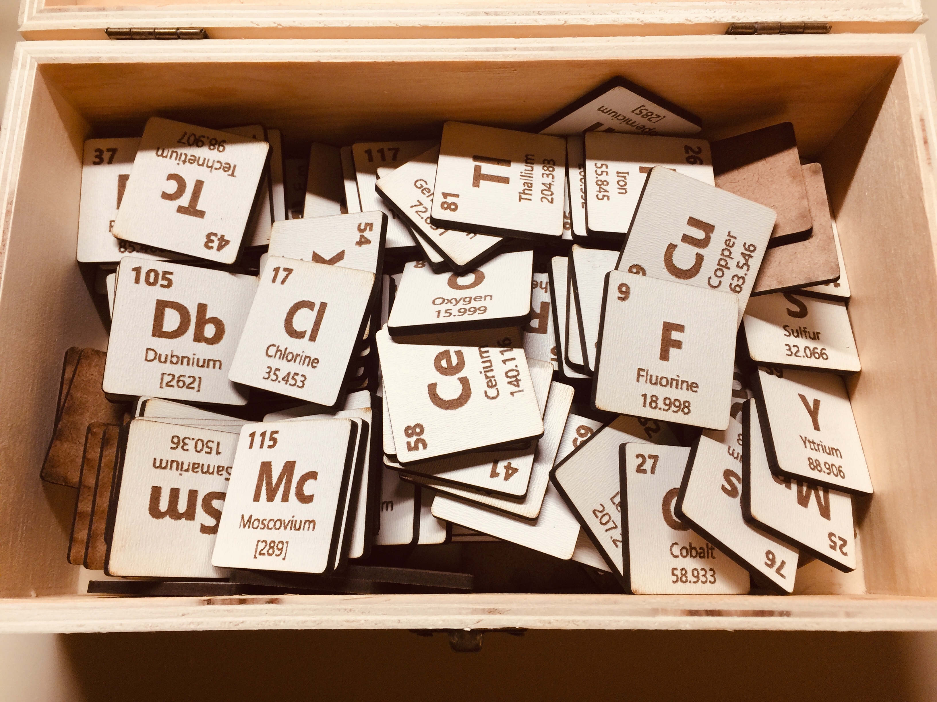 Order a set of elemental key tags or plaques using symbols from the periodic table.